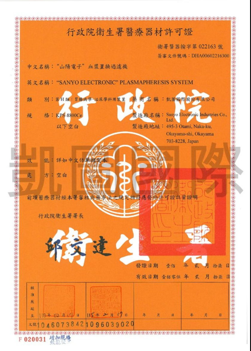 英文名稱:SANYO ELECTRONIC PLASMAPHERESIS SYSTEM