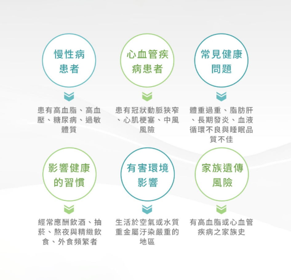 . 有心血管疾病風險者:高血壓、高血脂、高血糖者,希望透過改善血液品質來降低疾病風險。